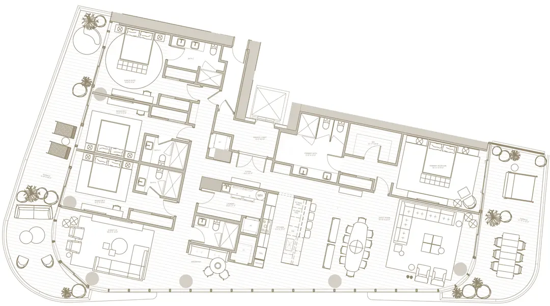 4 penthouses ranging from 5,037 sq ft to 7,193 sq ft